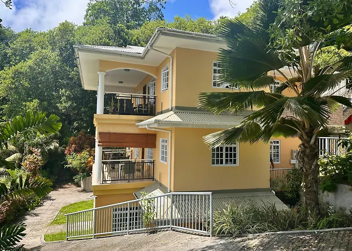 Featuring views of the mountain, Anse Royale Bay View Apartments is situated in the Anse Royale Beach district, a 17-minute stroll from Anse Royal Beach. Offering views of the sea, this apartment includes a terrace with a dining table.